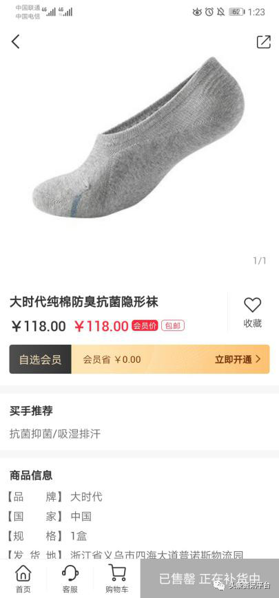 在转型后的喜兔、全球自选上查询防臭袜的相关讯息,发现两个平台上的防臭袜都处于0售出,0库存的状态。在淘宝平台上,有大量远远低于市场零售价的防臭袜售卖,在大时代防臭袜的贴吧中,也存在经销商寻求低价清货脱手的信息,大时代产品的售卖,出现了疲态。