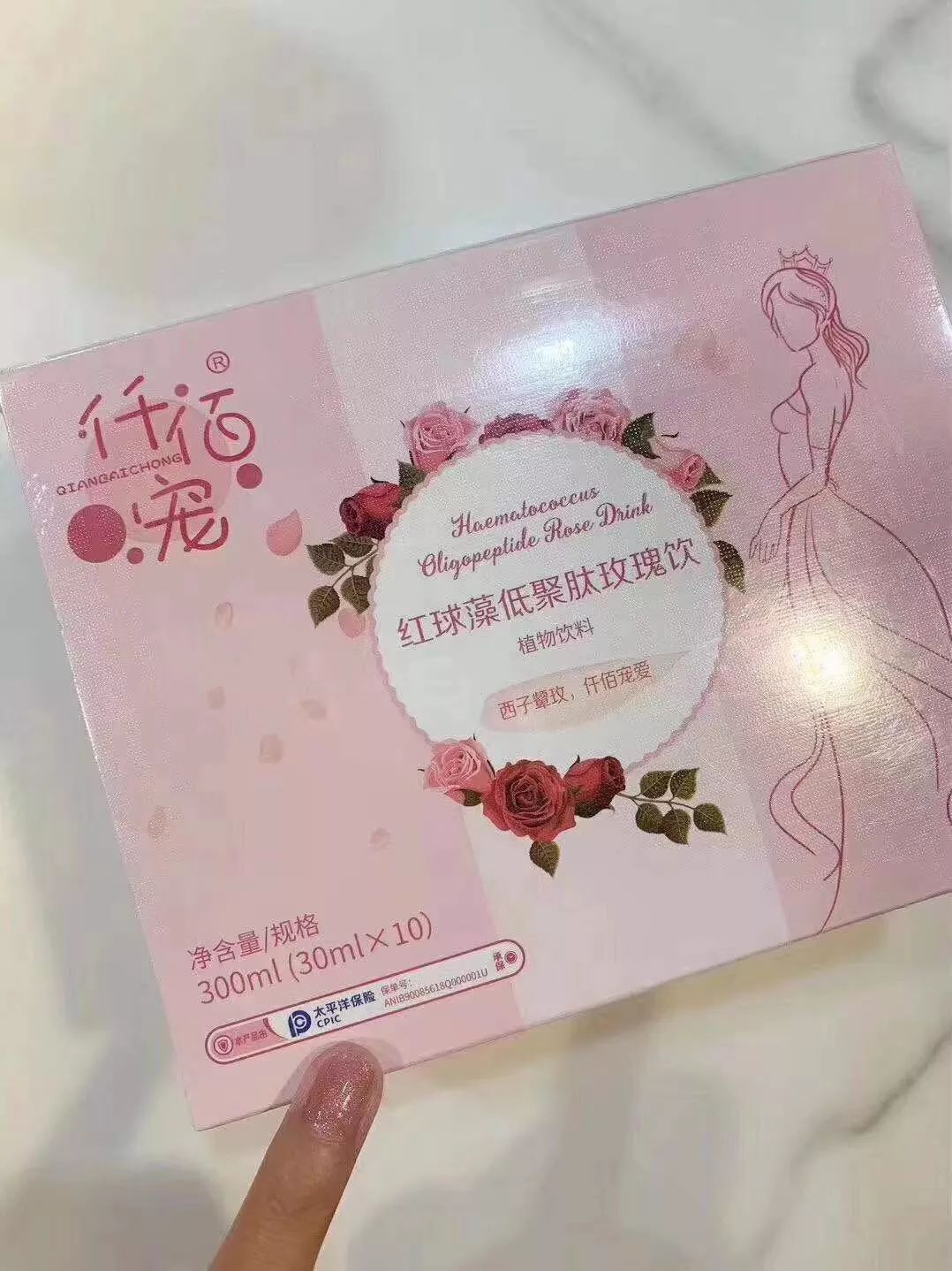公主家有七款护肤产品和一款仟佰宠减肥产品,成为代理商后可以在朋友圈销售这几款产品。根据宣传,这款零售价88元的仟佰宠红球藻低聚肽玫瑰饮有代餐功能、塑体功能、清体功能、养颜功能,是以天然膳食纤维及水果为主体,科学均衡,纯植物性饮料,可以喝出“轻生活”。