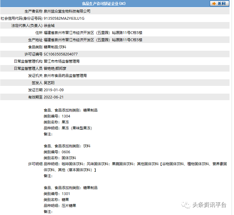经查国家食品药品监督管理局官网,我们发现泉州益众堂生物科技有限公司的生产范围仅有糖果制品和饮料这种属于食品、食品添加剂类别的产品,显然,江南玫瑰细胞营养素既不是保健品也不是药品,而是普通食品。