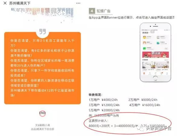 但显然,微信公众号“苏州橘满天下”曾推送过的《e学云商业盈利模式》与陈开强所谓“绝对不会承诺某个代理商会在某个固定的时间段里获得可观的盈利”的说法相悖,这篇文章也引起了不少代理的投诉。而对此,陈开强则表示,“苏州橘满天下”并不是橘子集团的官方微信公众号,它是苏州橘满天下的官方微信公众号,苏州橘满天下是一个独立的公司,和橘子集团之间有合作关系。而谈及“苏州橘满天下”微信公众号中的相关内容,能否代表橘子集团的立场时,陈开强则用“这我要去问问公司的法务”的说法进行开脱。