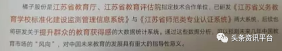 事实上,只不过是江苏省教育厅有一个软件是橘子公司做的,据悉,这个软件是一个质量检测系统,而该质量检测系统和橘子集团正在推进的项目并无任何关系。