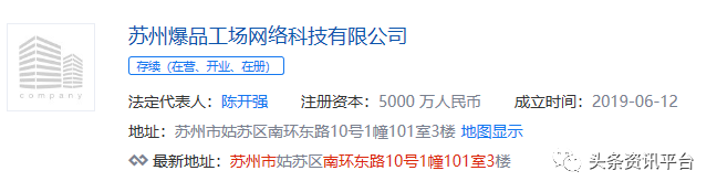 经查,苏州爆品工场网络科技有限公司成立于2019年6月12日,陈开强不仅仅是该公司的法定代表人,同时还担任着江南玫瑰运营总监的角色,另外与公司有关的重要人物还有国药医养首席工程师赵涛、爆品工场总裁肖省吾。