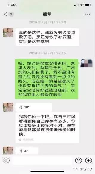 张萌多次跟上线熊掌反映产品不好卖,但是熊掌也没办法,“每天就让我们跟圈评论、加人,扫街加人、签名加人、互动,各种手段只要能卖货,每天高级别代理商教我们准备好的话术去骗别人。”张萌说道:“前段时间我看到百度上有个新闻视频说缇丽莎尔是传销,我才反应过来自己被骗了。”