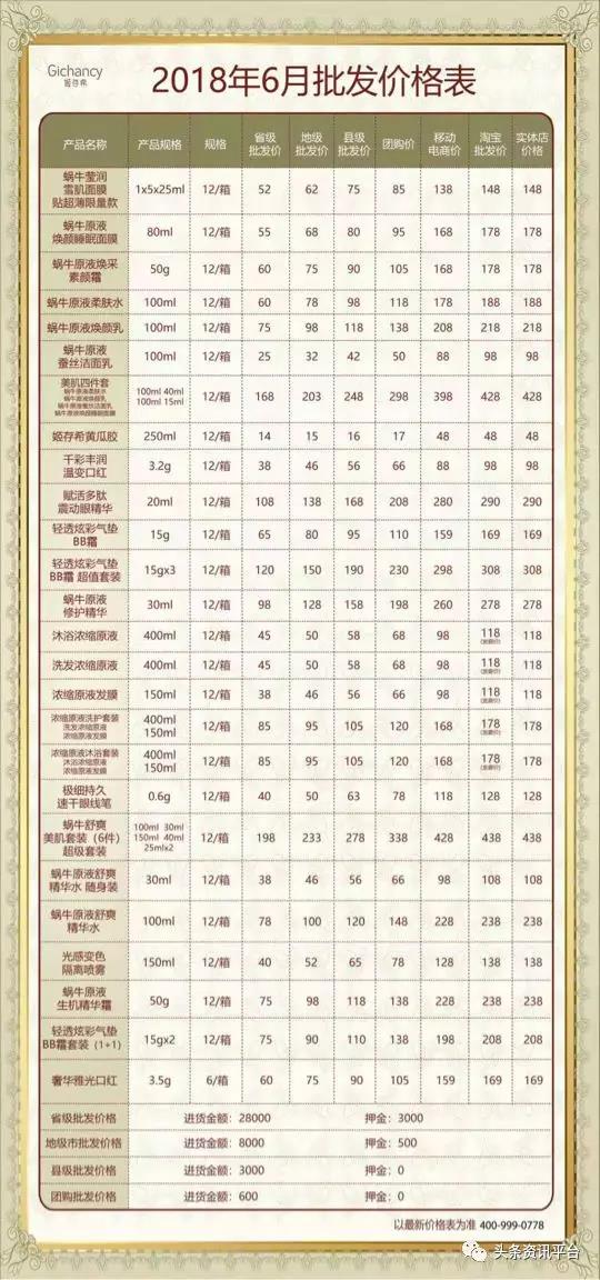拿货价格因不同的代理级别而异,同时,还存在移动电商价、淘宝批发价、实体店价格,其中淘宝批发价与实体店价格相同。具体的价格表如下: