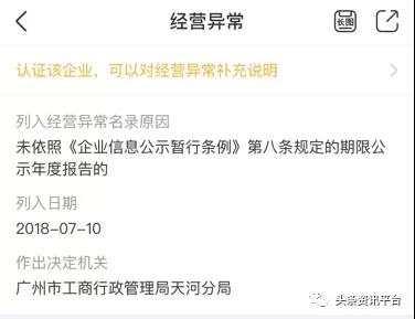 并且由许科辉担任股东的广州市廷威生物科技发展有限公司也曾因未依照规定期限公示年度报告而被列入企业经营异常名单。