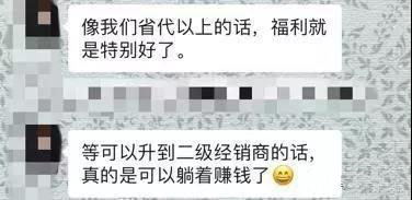 据了解,公司代理是省级总代以下是一个模式,省级总代以上是一个模式。当省级总代招募一个级别比自己低的代理主要是赚取差价,而招募一个同级别的省级总代公司会返2800元的培育金,也就是进货额的10%。