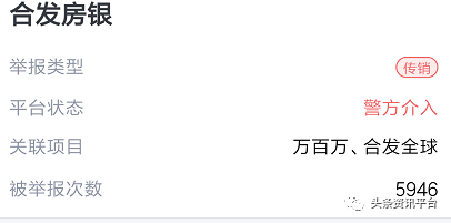 关于其房地产项目的运作,曾经的合发房银APP或许可以作为一个参考,经查灵鲲金融风险查询举报中心,我们发现该平台状态为警方介入,被举报次数已达5946次,举报类型为传销。在合发房银被会员们抛弃了的当下,房地产的有关项目已经移到了合美惠APP的“兴房产”板块下,酒店有关项目则移植到了“全球家”板块下。