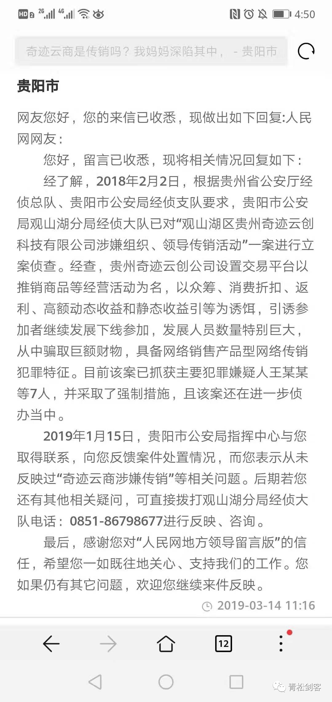 而在地方政府网站官方对奇迹云商的回复如下: