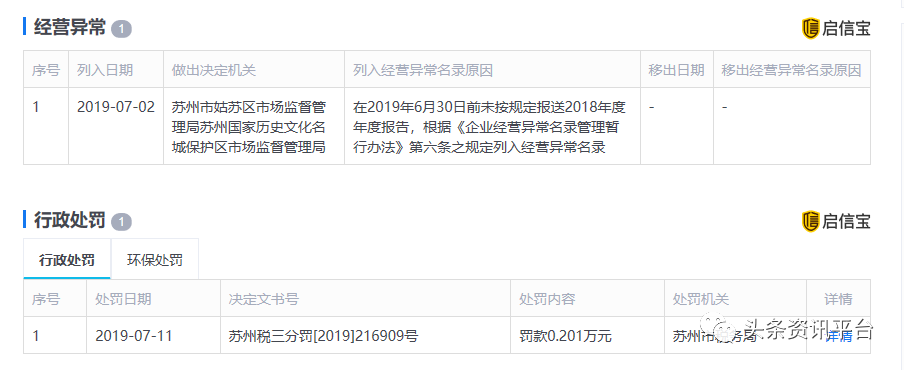 经查,权小辉目前还在万影(苏州)电子商务服务有限公司担任法定代表人,该公司在2019年7月2日因未提交年度报告被苏州市姑苏区市场监督管理局苏州国家历史文化名城保护区市场监督管理局列入经营异常名录,一周后的7月11日,该公司又因违反税收法律规定被苏州市税务局处以罚款。