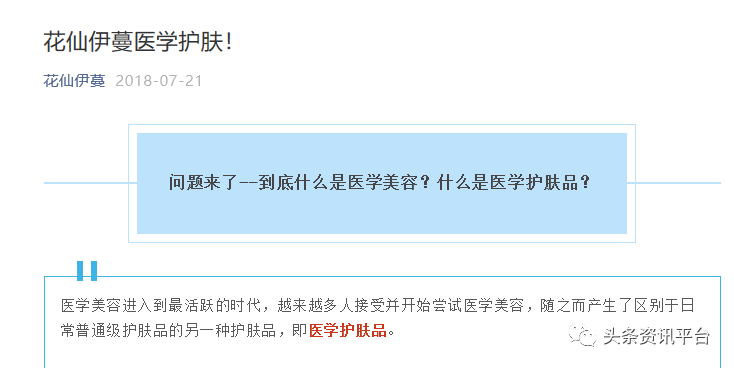 在上图中的这条介绍花仙伊蔓的微信文章发布几个月后,今年年初,国家药品监督管理局就发布了《化妆品监督管理常见问题解答(一)》,对“医学护肤品”等概念重申了监管态度。国家药监局明确指出,中国不存在“药妆品”的概念,且宣传“药妆”、“医学护肤品”等“药妆品”概念均属于违法行为。实际上,“药妆”这一概念在国内从未得到过法律承认,也没有明确定义,我国将9类强调独特效果的产品归为特殊用途化妆品,其他则归为非特殊用途化妆品,并无“药妆”和“医学护肤品”等说法。