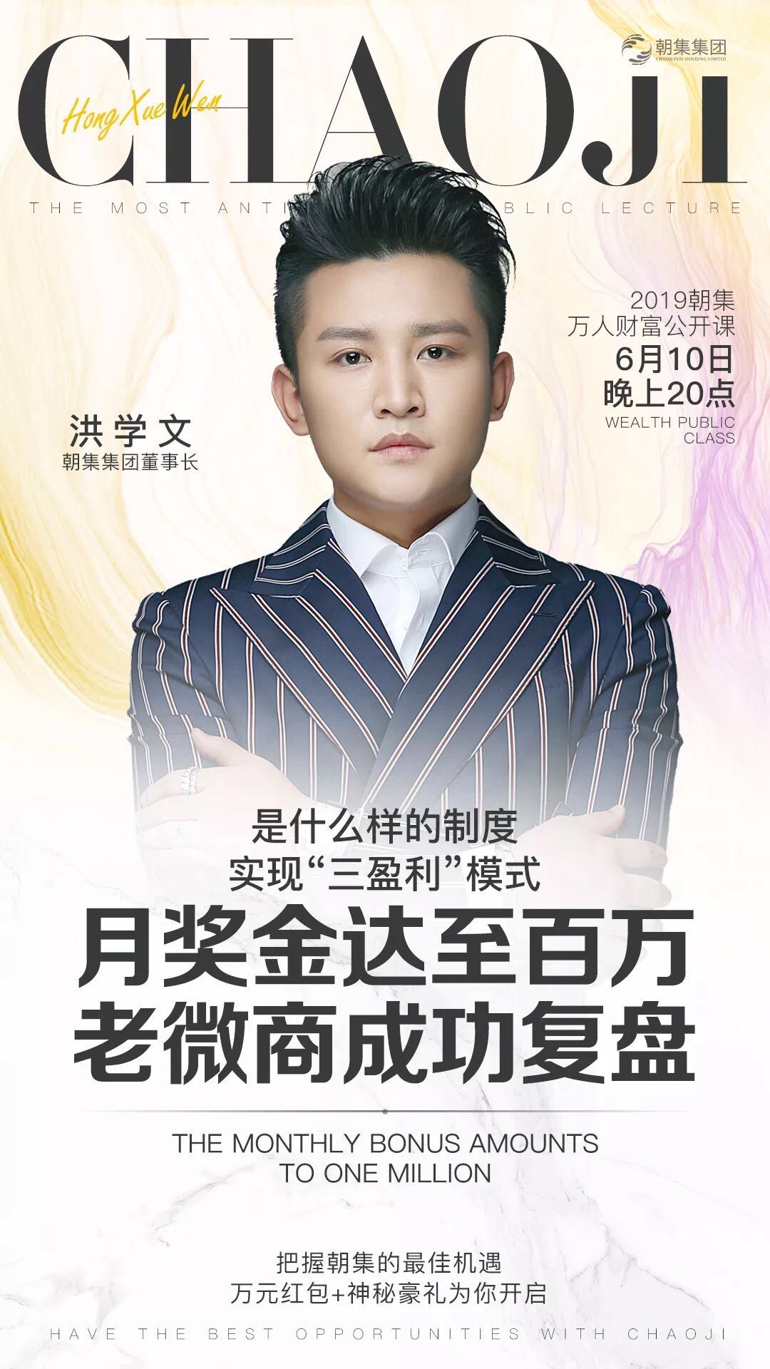 今年6月,朝集公司举行了一次万人财富公开课,由董事长洪学文主讲,课程名叫做《月奖金达至百万,老微商成功复盘》,到底是什么样的制度可以实现快速成交,又可以让代理的月奖金达到百万呢?