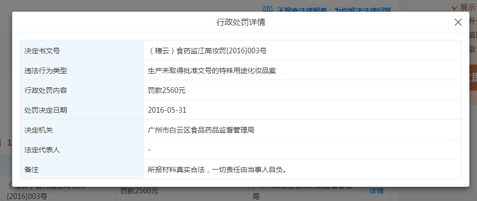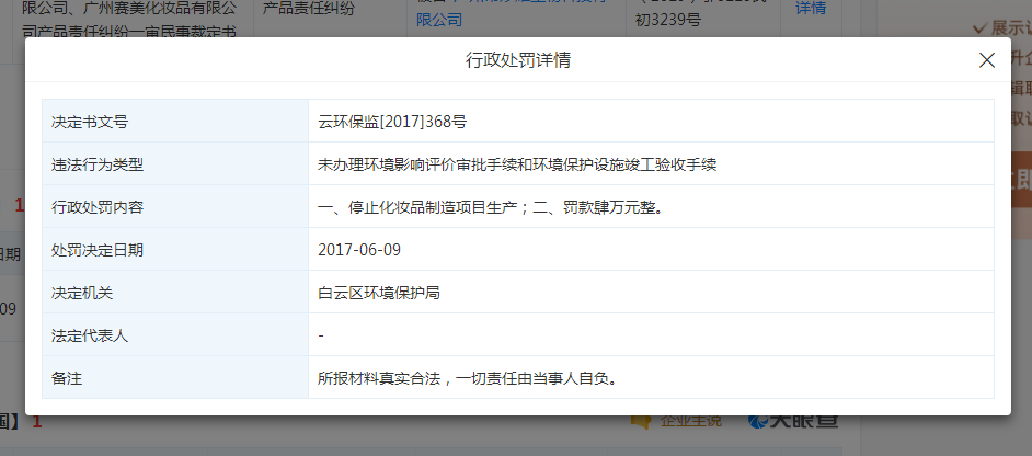 值得一提的是,生产维一精油的三家生产商其中有两家被行政处罚,分别为赛美于2017年6月9日因未办理环境影响评价审批手续和环境设施保护竣工验收手续被白云区环境保护局责令停止化妆品制造项目生产,罚款4万元。九科精细于2016年5月31日因生产未取得批准文号的特殊用途化妆品案被广州市白云区食品药品监督管理局罚款2560元。