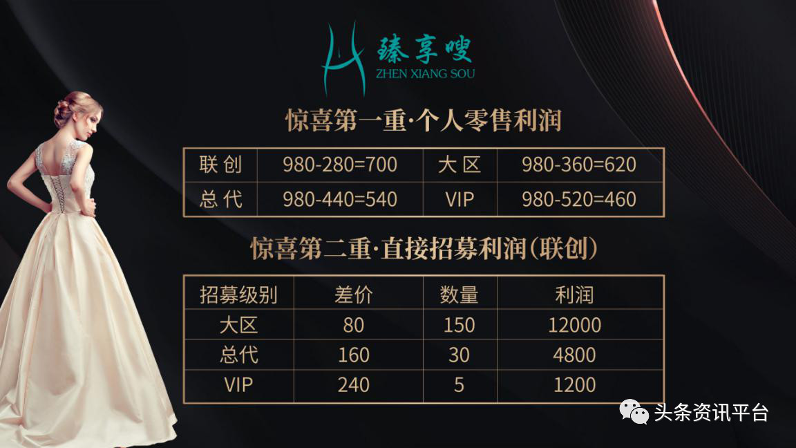 另外值得一提的是,在10月到10月底这段期间是臻享嗖的内招时期,最高级别2折门槛,也就是说,目前要成为联创,仅需要28000元,而到了11月底正式新品发布会举办后,联创将会恢复14万元的门槛。而如果以28000元购买500盒反推过去的话,我们可以看到,一盒的单价仅为56元,再对比980元的零售价,其间的利润接近翻了20倍。