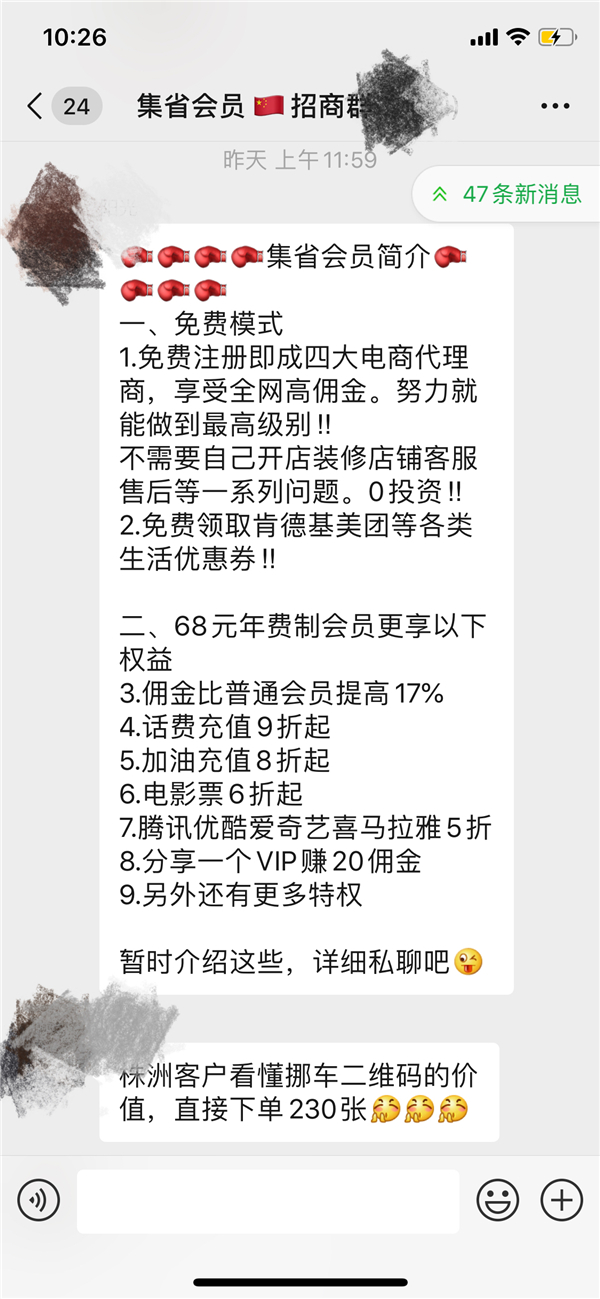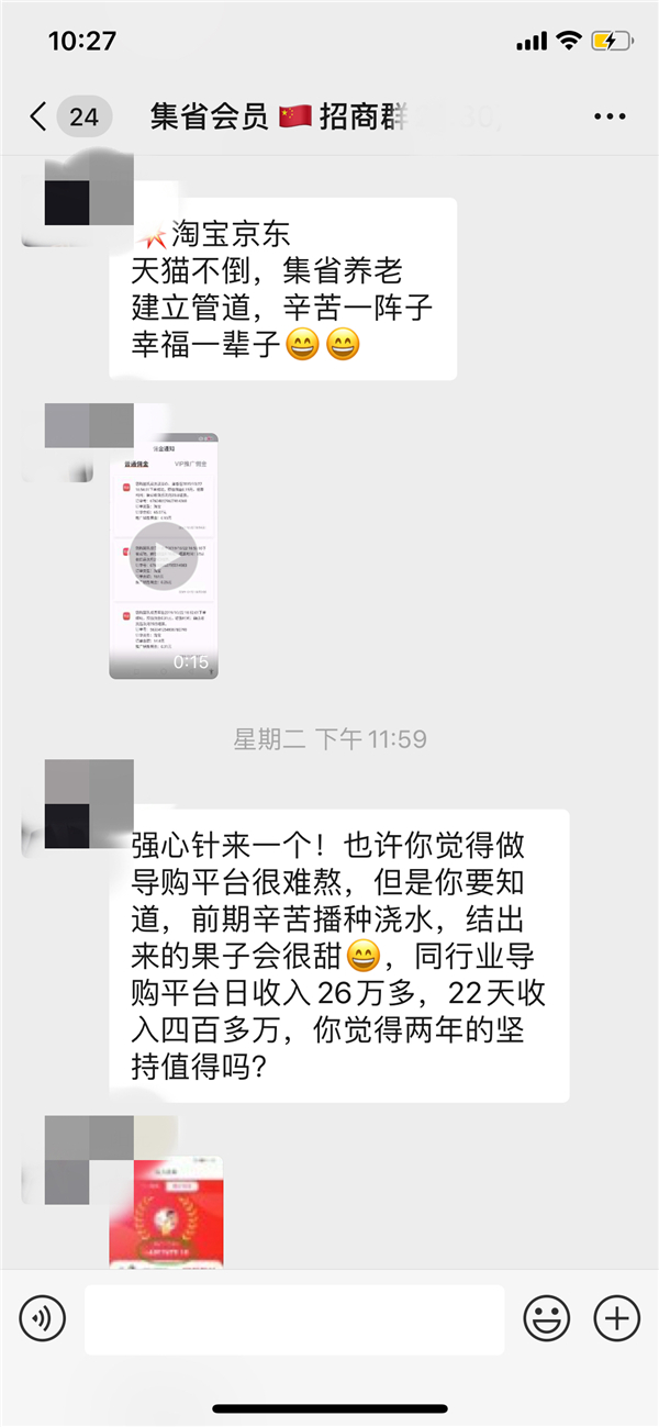 在集省会员的招商群里,所谓的互联网“大佬”每天都会通过各种方式吸引新人购买超级VIP,并鼓励已经是超级VIP 的人升级推广顾问或培训导师。“如果你下面有100人,一年后这100人都选择复投超级VIP,也是一笔很可观的收入。”王女士说,级别越高,直推收入也就越高。