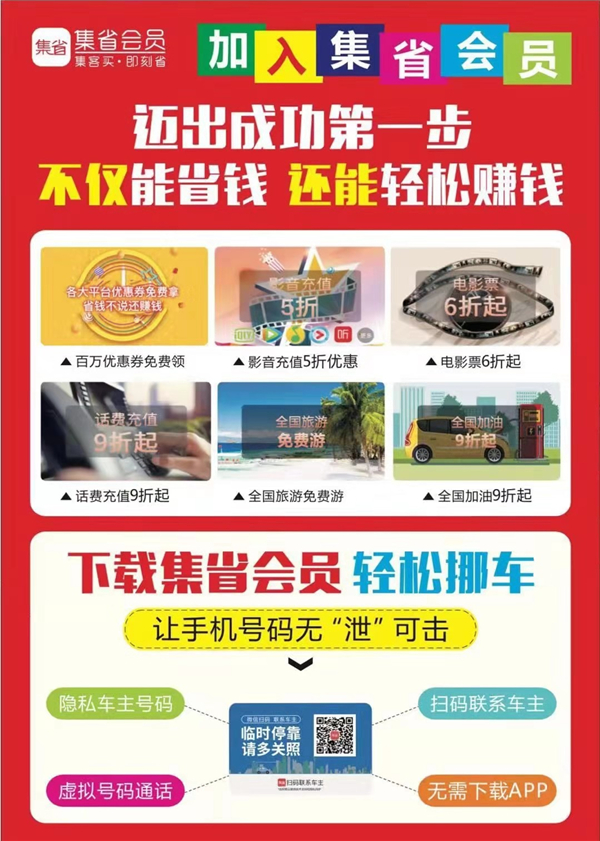 此外,为了方便推广,实现吸粉与锁粉,集省还推出了“挪车二维码”。“我们的车上都会留电话号码,现在用二维码的形式替代手机号,别人需要联系你挪车时,只需要打开手机扫你留在车上的二维码,就能自动跳转到虚拟电话进行拨打,这样双方的信息都会受到保护。”王女士说,超级VIP每个月都能免费获得30张挪车二维码,一年下来就是360张,可以用来做地推。