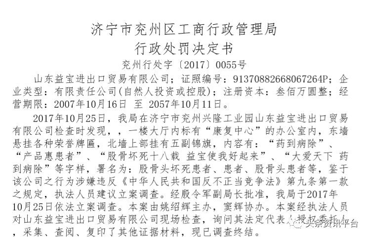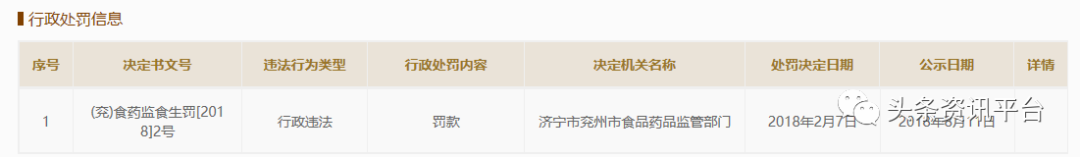 经查国家企业信用信息公示系统,我们还发现在2018年2月7日,山东益宝生物制品有限公司还因行政违法,遭到了济宁市兖州市食品药品监管部门的罚款。