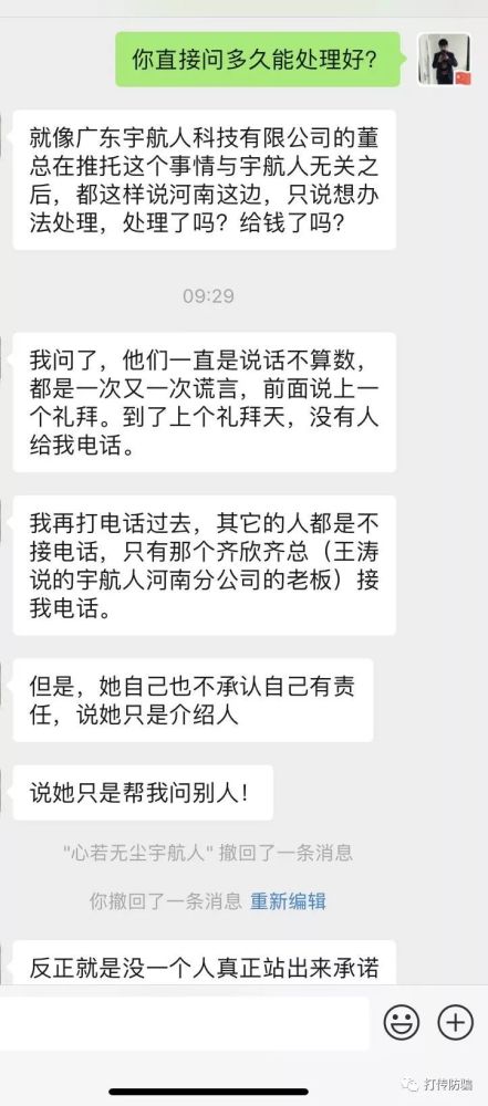 宇航人河南分公司欺诈消费者后续:老板与操盘手上演互相“踢皮球”