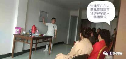 今年8月27号,王涛又约李先生到哈尔滨面见河南省宇航人分公司的总经理张建平,李先生透漏,张建平不仅是宇航人河南分公司的操盘手,还是王涛的推荐人。第二天,李先生与王涛、张建平一起在内蒙古市场见面,张建平公开讲解了宇航人集团的企业,产品以及奖金分配模式,张建平特别强调了宇航人在今年7月初以来,与宇航人董事长邢国良等高层决议通过互联网引流,让宇航人进行转型。