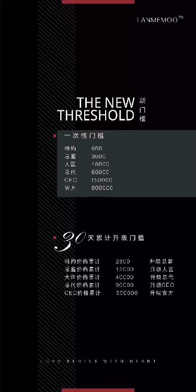 澜墨甚至为代理定制了一套诱人的奖励制度:累计进货12万元奖励苹果最新手机;累计进货25万元奖励韩/泰双人游;累计进货50万奖励欧洲游;累计进货100万奖励迪拜双人游外加现金1万;累计进货200万奖励现金6万;累计进货300万奖励宝马3系首付;累计进货500万奖励一辆捷豹首付;累计进货1000万奖励一辆保时捷全款;累计进货1500万奖励一辆玛莎拉蒂全款;累计进货2000万奖励阿斯顿马丁全款;累计进货3000万奖励宾利/法拉利全款。领取时间为每年12月的年会。