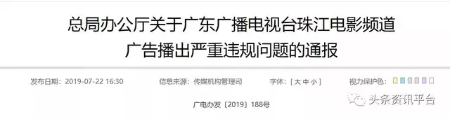 据悉,国家广电总局在检查中发现,广东广播电视台珠江电影频道无视《通知》要求,于5月15日至6月30日期间,每天多次播出“认购甘肃文交影视中心《重回地球》电影衍生品”广告。该广告由主持人频繁提示扫描屏幕中二维码,诱导观众添加私人微信账号后,认购1万元1股的所谓“《重回地球》电影衍生品”,成为电影投资者并获取票房收入分成,属于典型的影视剧项目非法集资广告。