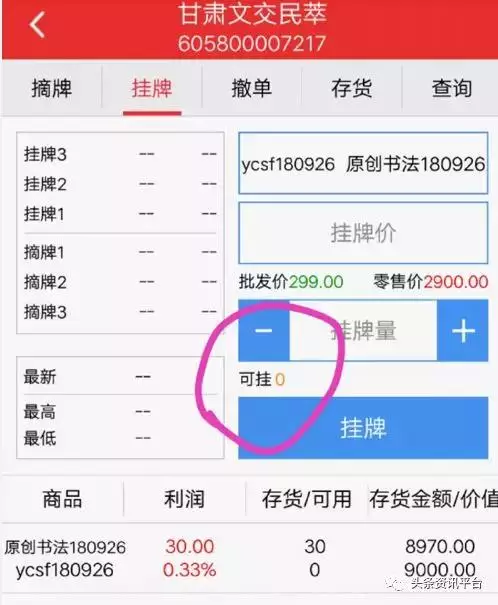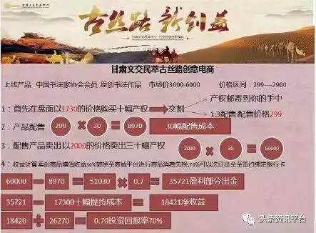 其产品除了书画外,还有祁连玉等。据“甘文中心祁连玉现货交易奖励办法”显示,该产品的市场价(零售)为10元/手,特价(批发)为4元/手,中间的差价6元就是投资者赚取的利润,经营收益多少取决于获得特价仓单数量多少。