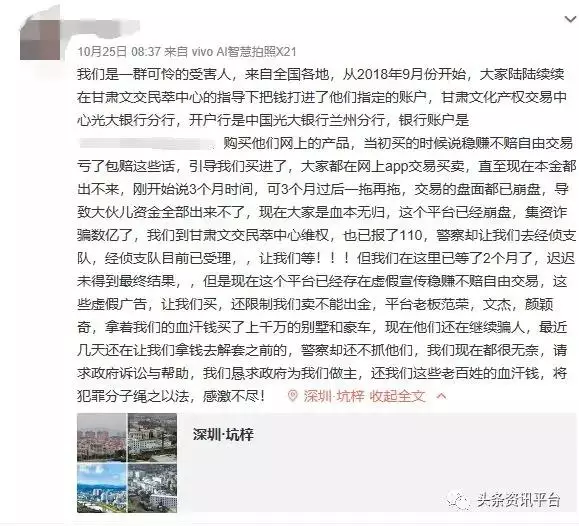 近段时间,网上流传着一些关于“甘肃文交骗局”、“甘肃文交民萃中心骗局”的图片与投诉。