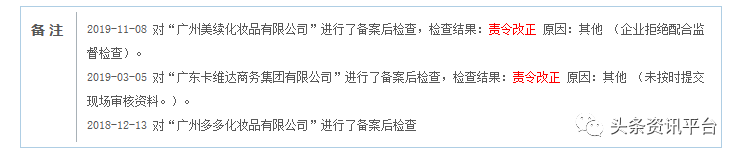 此外,我们还在“卡维达梦幻星辰十色眼影”备注栏内,看到了“企业拒绝配合监督检查”的字样。