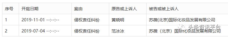 关于苏薇公司,近期可谓诉讼缠身。经查,该公司在今年7月因侵权责任纠纷被演员范冰冰告上法庭,11月同样因侵权责任纠纷又被演员黄晓明告上法庭,原因皆为“肖像侵权”。