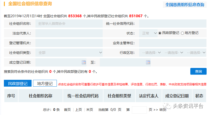 有资料介绍“黄强是电商产业的发起人之一,多年来在电商领域高层任职,拥有着十年的电商市场操纵经验和分析经验,同时黄强也是硕美微商平台联合创始人、黑马微商学院金牌讲师以及全球华人微商协会理事”。而当我们通过民政部官网搜索“全球华人微商协会”时,并没有得到任何搜索结果反馈。