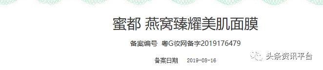 经查,我们发现目前该款面膜的备案编号为“粤G妆网备字2019176479”。
