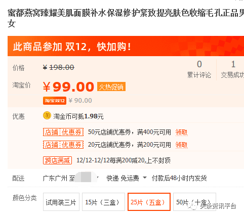 但在淘宝上,还有一家名为“蜜都品牌直销店”的店铺,99元就能购买5盒,也就是说买3盒送2盒。