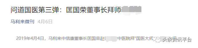 在今年四月,“马利来微刊”介绍称,马利来中信康董事长匡国荣已是三位“国医大师”的弟子。