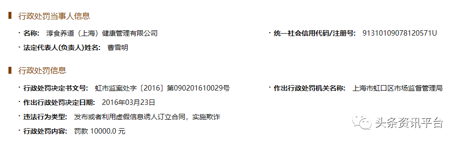 经查,该公司在2016年3月曾因“发布或者利用虚假信息诱人订立合同,实施欺诈”被上海市虹口区市场监督管理局罚款1万元。