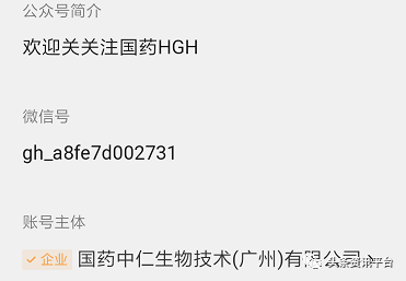 另外,还有一个名为“国药HGH”的微信公众号,其认证主体是国药中仁生物技术(广州)有限公司,目前该公众号尚无一条消息发布。经查,该公司成立于2019年10月15日,法定代表人詹旺珍,股东有詹旺珍(大股东)、陈瑜海、鲁亚容和李婷雪,注册资本100万元,认缴日期为2060年。