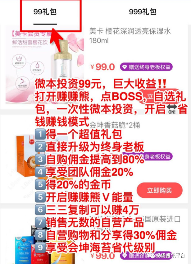 据了解,在赚赚熊上,用户可以分99元和999元两个级别进行加入,不同级别对应的能量柱不同,收益也不同。