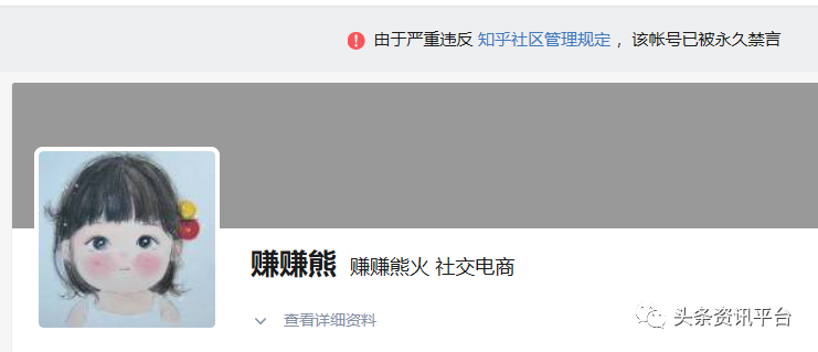 目前,在知乎上,一个负责推广赚赚熊APP的账号已因由于严重违反知乎社区管理规定,被永久禁言。