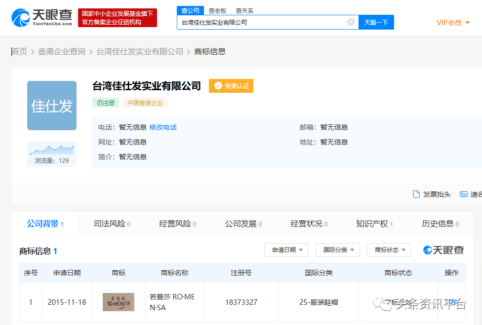 据天眼查显示,与佳仕发实业关联的公司有两家,一家是在台湾注册的佳仕发实业有限公司,该公司成立时间是2010年5月,代表人和董事都是蔡株容一人;还有一家在香港注册的台湾佳仕发实业有限公司,这家私人股份有限公司的成立时间是2015年9月。另据企查查显示,在香港注册的台湾佳仕发实业有限公司曾申请过“若曼莎”的商标,目截止目前,该商标的状态为“商标无效”,是不是这就说明佳仕发与若曼莎关系不大?