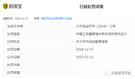 虽说华诺公司是此产品的总经销商,华北制药也顶了个技术支持的名字,但事实上,该产品是由宁夏西域医疗科技有限公司生产的,械备也是宁字号的,2018年,该公司还曾因“未建立质量管理体系并保持有效运行”而被中卫市市场监督管理局处以行政处罚。