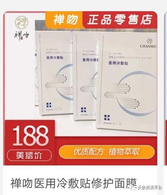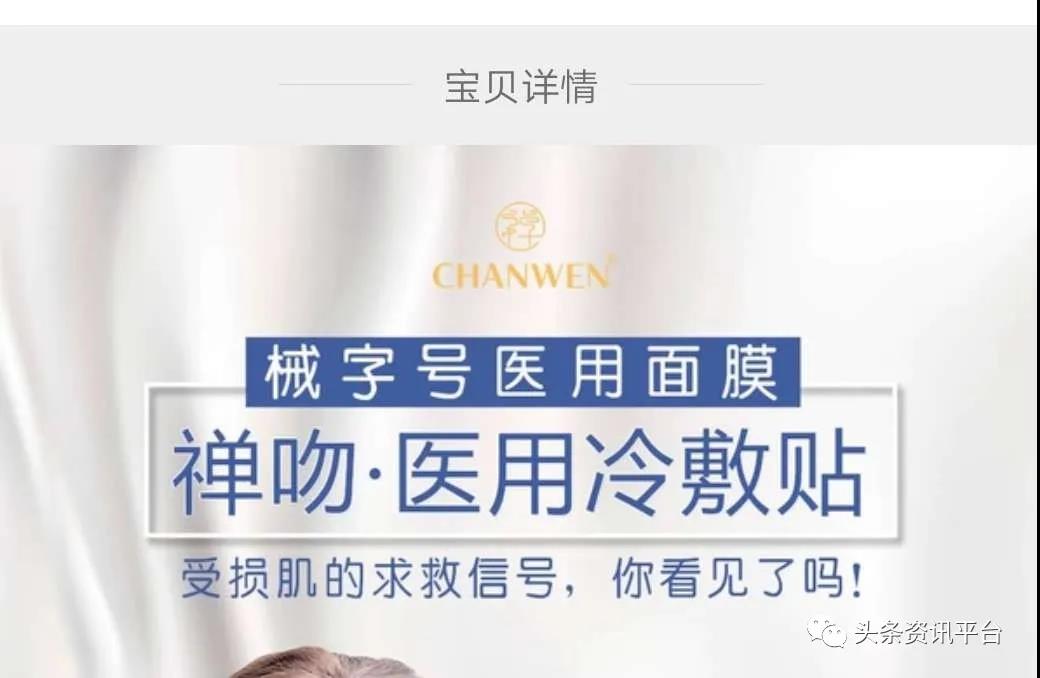 再说说另外一个名叫“禅吻医用冷敷贴”的产品,此产品在宣传方面所存在的问题也同样值得关注。相关资料是这样对其进行宣传的:可以修复肌肤受损屏障,针对敏感肌肤和受创肌肤研制,美白淡斑,退热消肿等等。顺带一提,该产品还被宣称是“禅吻”的首款“械字号医用面膜”。