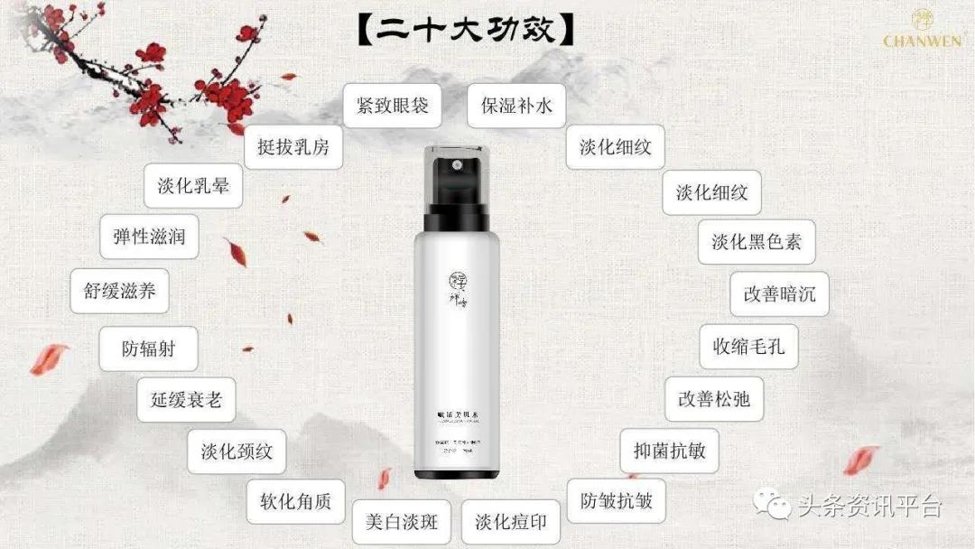 接下来,我们再来看看“禅吻”旗下的系列产品都具有哪些功效。据了解,“禅吻”目前最为火爆的是一款叫赋活美肌水的产品。