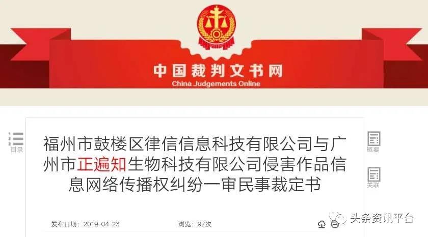 而关于正遍知公司本身,我们还在中国裁判文书网上找到了一桩由广州市正遍知生物科技有限公司担任被告的官司。