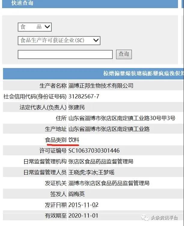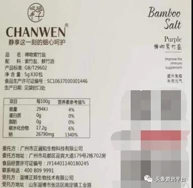 据调查,这款产品由淄博正邦生物科技有限公司生产,其生产许可证号为SC10637030301446,在国家食品药品监督管理局官网中可以找到关于禅吻紫竹盐的相关信息,据相关页面显示,该产品是食品类别中的饮料,仅属于普通食品。