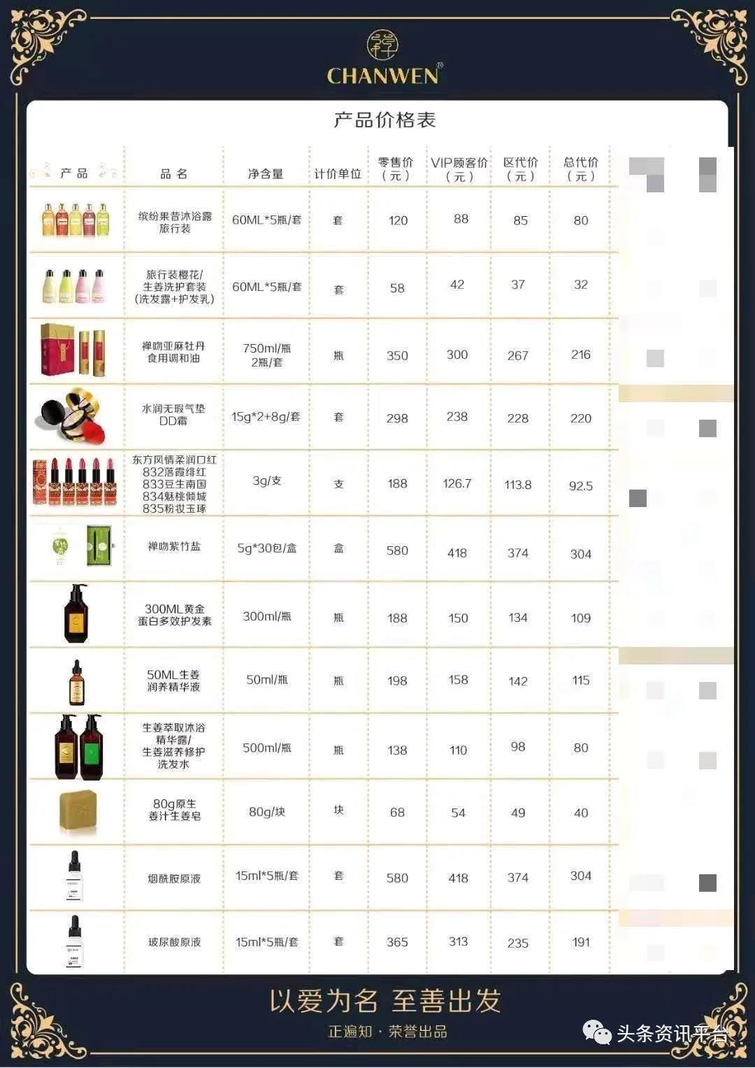 附禅吻产品价格表: