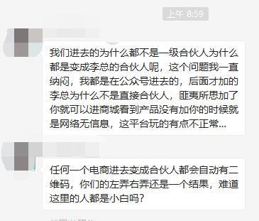 随着加入的人越来越多,质疑声也开始甚嚣尘上,比如药直购平台在“自动生成海报”方面所存在的问题以及商城页面反应过慢的问题,依然迟迟得不到解决,这引发了不少合伙人的不快。