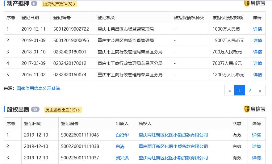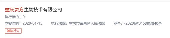 而重庆灵方生物技术有限公司成立于2005年11月28日,法定代表人白涛,注册资本3000万元,股东有白绍华、刘兴洪、白涛、王臣生、重庆翊图企业管理咨询合伙企业(有限合伙)、重庆至财科技发展有限责任公司。据启信宝显示,围绕着该公司,还有多条有关“动产抵押”和“股权出质”的信息。时间来到2020年1月,该公司又被重庆市荣昌区人民法院公示了一条被执行人信息,案号为(2020)渝0153执恢40号。