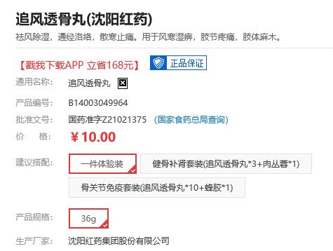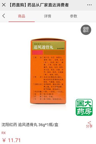再比如“沈阳红药追风透骨丸”,该产品在药直购平台上的标价为11.71元,而此产品(同规格)在某医药网站上的售价却仅为10元,综上,一些药直购推广人员所说的“全网最低价”的说辞不攻自破。