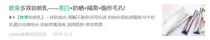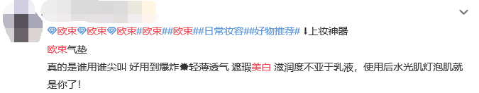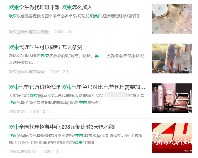 在另外一些挂着欧束代理之名的个人公众号和微博号所发布的文章和消息当中,欧束多效妆前乳和欧束气垫等产品也被介绍为具有美白的功效,而这些产品同样属于非特殊用途化妆品,并不具备美白等功效。