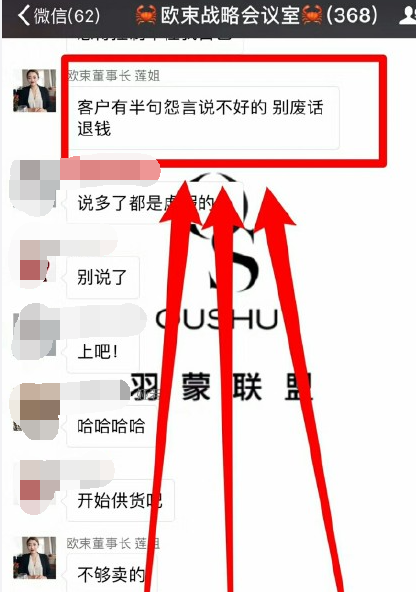 多年前,欧束董事长宋维樵在名为“欧束战略会议室”的微信群中,曾发表过一句震撼人心的“退钱宣言”:“客户有半句怨言说不好的,别废话,退钱”……现在回过头来看,实在是有些难堪。