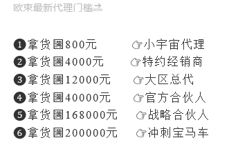 据资料显示,欧束的代理商级别分为五级,分别是小宇宙VIP、特约经销商、大区总代、官方合作伙伴和战略合伙人,这五个代理级别所对应的首批进货金额分别是800元、4000元、12000元、40000元和168000元。其中,战略合伙人和官方合作伙伴分别还需要缴纳10000元和2000元的保证金,此外,战略合伙人、官方合作伙伴和大区总代的单次补货金额分别要达到28000元、8000元和3000元。
