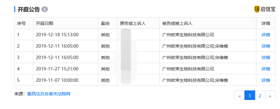 据启信宝显示,欧束公司在去年年末的一段时间内曾因合同纠纷,先后多次被他人告上法庭。